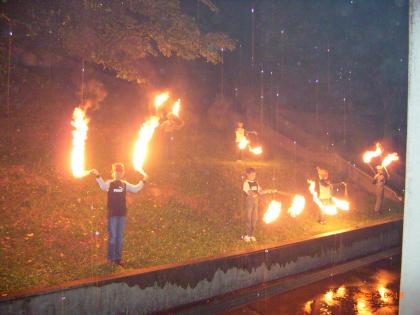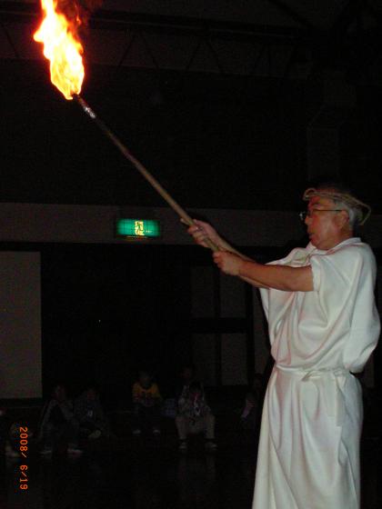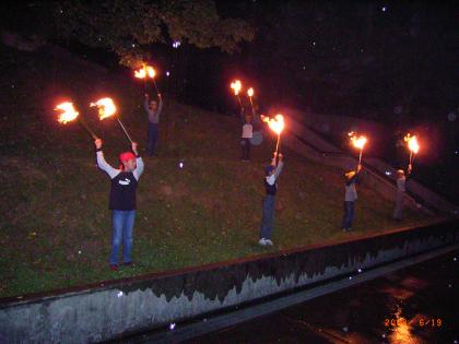 野外学習その9 公開日 2008/06/19 更新日 2008/06/19 学校の様子 キャンプファイヤーの締めくくりは、トーチトワリングです。 勇敢な6名の児童が、雨にも負けず堂々と力いっぱい繰り広げた、炎のショーに、誰もが盛大な拍手を惜しみませんでした。 ラストは、火の神(校長先生)を先頭にファイヤー場を後にしました。 今日は、とってもよく眠れることでしょう。 あしたは、うちへ帰ります。 お父さん、お母さん、お休みなさい。