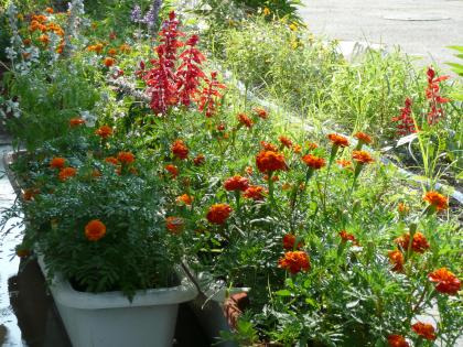 学校の花壇(夏) 公開日 2008/07/30 更新日 2008/07/30 学校の様子 園芸委員が種から育てたサルビアやマリーゴールドが、きれいに花を咲かせました。毎朝、水やりを欠かさずしてくれたおかげです。