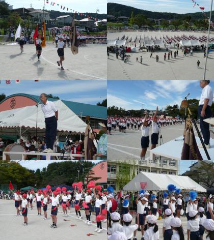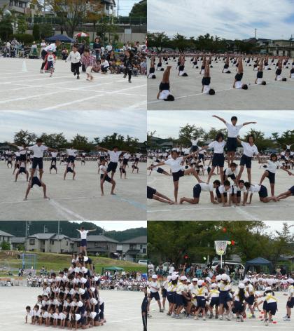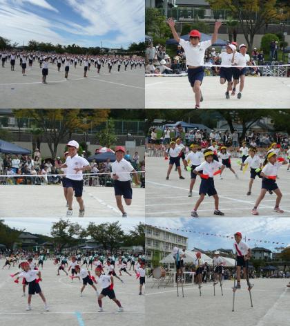 さわやかな秋晴れのもとで、第60回秋季大運動会が開催されました。どの種目も練習の成果を発揮して、白熱した演技が繰り広げられました。特に5・6年生の組み立て体操、最後の「立体ピラミッド」が完成した時は、大きな拍手が送られました。