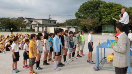 今朝は朝会を行いました。平成27年度も後半に入りました。今日は、後期の総務委員・学級委員の認証を行いました。総務委員・学級委員の人たちを中心にして、後期もみんなでがんばってください。