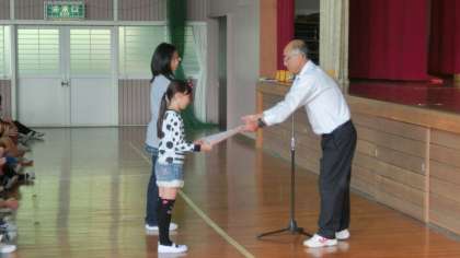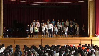 集会を行いました。来週29日(木)に行われる春日井市小学校音楽会に参加する4年2組の皆さんの発表をみんなで聞きました。一生懸命に元気よく歌うことができました。本番も玉川小学校の代表としてがんばってください。その後、表彰伝達を行いました。