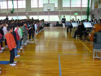 セントラル愛知交響楽団の方をお招きし、親子芸術鑑賞会を行いました。プロの生演奏を聴ける貴重な機会となりました。プログラムの内容もなじみの曲が多く、楽器の紹介や歌もありました。中でも楽団の方の演奏に合わせてみんなで歌った校歌は、思い出に残ったと思います。