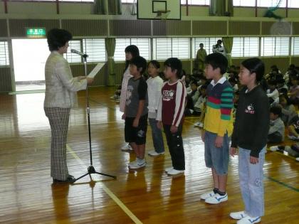 後期任命式 公開日 2008/10/14 更新日 2008/10/14 学校の様子 10月14日(火)の集会で、後期任命式を行いました。児童会で中心となって活動する総務委員とクラスで中心となって活動する学級委員に対して、教頭先生から任命証を渡してもらいました。みんなでさらに良い玉川小学校を作り上げていこうと、意欲満々です。