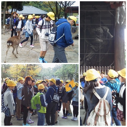 奈良東大寺に到着しました。 たくさんの鹿に迎えられ、嬉しそう。 少し怖そう。