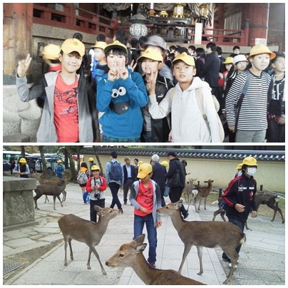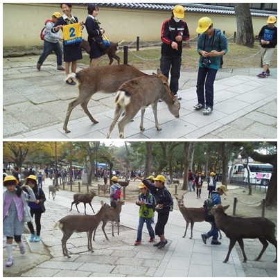 大仏見学後、鹿と戯れました。 みんなとても楽しそうです。
