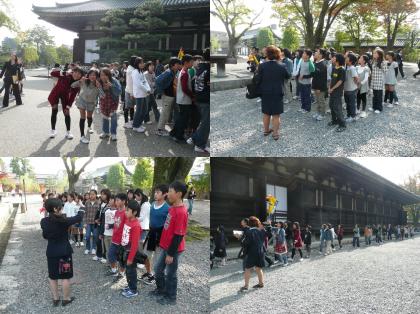 修学旅行第1日目。三十三間堂と映画村、金閣までのスナップ写真です。