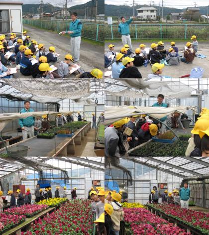 不二農芸見学 公開日 2008/11/29 更新日 2008/11/29 学校の様子 11月27日(木)3年生は、社会科学習の一環として「不二農芸」を見学しました。農家の方から、花の苗の作り方や作る上で工夫していること、どんな所へ出荷しているかを聞くことができました。農家で働く人々の様子について学習を深めることができました。
