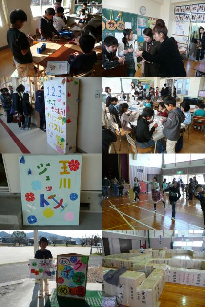 玉川祭 公開日 2008/11/29 更新日 2008/11/29 学校の様子 11月29日(土)に、玉川祭が行われました。今年のテーマは北京オリンピックにちなんで「世代をこえて 心を一つに 〜玉川オリンピック〜」というテーマで、生活班ごとに、いろいろと工夫された競技が行われました。保護者の方もたくさんみえ、子どもたちと一緒にいろいろな競技に挑戦していました。多くの金メダルを手にした子どもたちは、みんな大喜びでした。