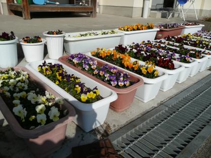 まだまだ寒い日が続きますが、学校の花壇は春めいています。園芸委員が世話をしたビオラやパンジーがきれいに咲いています。