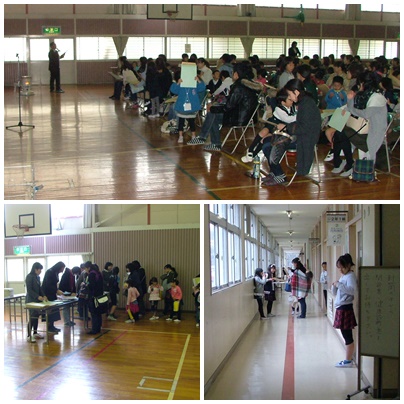 来年度の新1年生とその保護者の皆さんに来校してもらい、就学時健診を行いました。小学校へ入学するための大切な検査です。引率と健診の手伝いは5年生がしてくれました。新1年生の子どもたちは5年生の案内で、初めて入る玉川小学校の中を緊張気味に歩いていました。