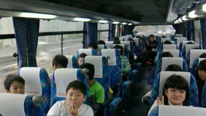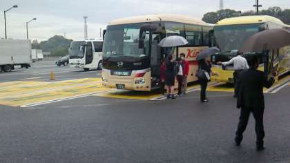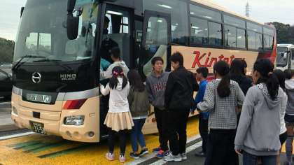 ほぼ予定通りに御在所SAに到着です。少し雨が降っていますが、みんな元気です。御在所を出発後は、お楽しみの「おやつタイム」です。