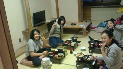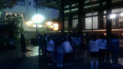 朝の散歩で本能寺へ行きました。その後朝食です。天気は小雨が降っていますが、みんな元気です。