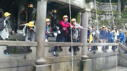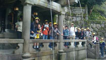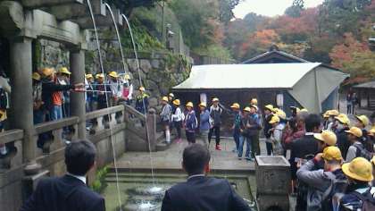 「音羽の滝」での様子です。ご利益があるとよいですね。