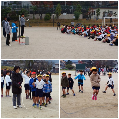 大縄跳び大会を行いました。8の字跳び3分間を2回行い、その合計回数で勝敗を競います。どのクラスも優勝目指して気合が入っていて、チームワークがとてもよかったです。大縄跳び大会を通して、クラスの団結力が高まったと思います。優勝クラスは、低学年の部が2年1組、中学年の部が4年1組、高学年の部が5年1組でした。