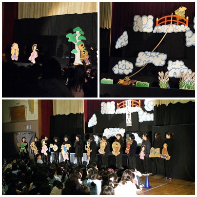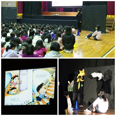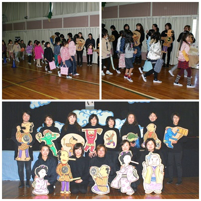 Zooお楽しみ会 公開日 2016/12/02 更新日 2016/12/02 学校の様子 Zooのお母さん方によるお楽しみ会があり、「もっちゃう もっちゃう もう もっちゃう」と「ふしぎなたいこ」の2つのお話を、プレゼンを使った読み聞かせとペープサートで見せていただきました。すばらしい内容で、お母さん方の演出に子どもたちは夢中でした。Zooの皆さん、ありがとうございました。