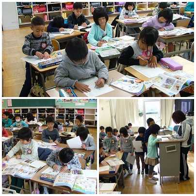 1年生の授業の様子です。1組は生活科でお家で自分のできる仕事を見つけて絵と文章でまとめる学習を、2組は国語で「ずうっと、ずっと、大すきだよ」の単元の学習をしていました。みんな集中して授業に取り組んでいます。