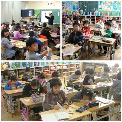 2年生の授業の様子です。2時間目は2クラスとも算数の授業で、三角形と四角形の学習でした。身の回りの三角形や四角形を探したり、正方形と長方形の特徴について考えたりしていました。ところで、保護者の皆様、三角形の定義はわかりますか?気になる方は、2年生の算数の教科書をご覧になってください。