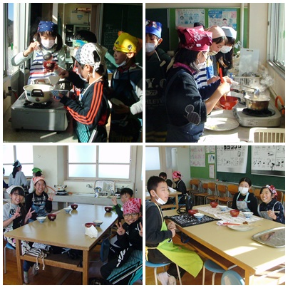 5年生が調理実習を行いました。メニューは味噌汁とご飯です。味噌は一学期にみんなで仕込んだもので、出汁も煮干しからとった本格的な味噌汁です。味もよかったようです。ご飯も上手に炊けていました。自分たちで作ったのでおいしかったですね。ぜひ家でも実践してみてほしいと思います。