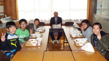 今日は6年2組の子どもたち5人が、校長室へ給食を食べに来てくれました。