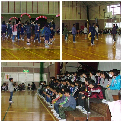 卒業生を送る会 1 公開日 2017/03/02 更新日 2017/03/02 学校の様子 卒業生を送る会を行いました。どの学年の発表も心がこもっていて、みんなの想いがつまったとても温かい雰囲気の卒業生を送る会だったと思います。1年生から5年生は6年生への感謝の気持ちがよく伝わってきました。6年生は6年間を過ごした玉川小学校への感謝と「後は頼んだぞ」という気持ち、中学校生活への意気込みを感じることができました。写真は、開会式、引継ぎ式、1年生と2年生の発表の様子です。