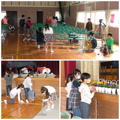 卒業式準備完了 公開日 2017/03/15 更新日 2017/03/15 学校の様子 午後は4年生と5年生が明日の卒業式の準備をしてくれました。校舎の内も外も一生懸命に掃除をしてきれいにしてくれて、明日の準備が整いました。4年生・5年生の皆さん、ありがとうございました。明日は晴れ予報です。いい卒業式ができそうですね。