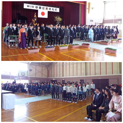 第68回卒業証書授与式 1 公開日 2017/03/16 更新日 2017/03/16 学校の様子 第68回卒業証書授与式を行いました。天気にも恵まれて、思い出に残る温かい卒業式ができたと思います。多数のご来賓・保護者の皆様にご出席いただきありがとうございました。卒業生には希望を持って中学校生活を頑張ってほしいと思います。6年生の皆さん、卒業おめでとう。