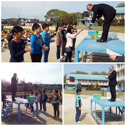 朝会(総務委員・学級委員認証式)