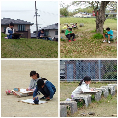 授業 6年生 公開日 2017/04/20 更新日 2017/04/20 学校の様子 6年生の授業の様子です。1組は図工で運動場での写生、2組は算数で線対称の学習です。さすがは6年生、真剣に取り組んでいますね。
