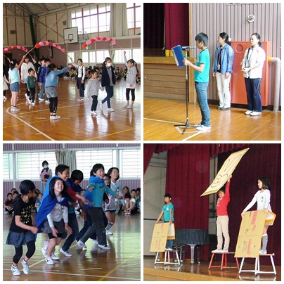 おめでとう集会 公開日 2017/04/25 更新日 2017/04/25 学校の様子 一年生の入学をお祝いする「おめでとう集会」を行いました。はじめに総務委員が一年生に学校生活のきまりを劇で教えてくれました。一年生の紹介では、総務委員が一人ずつ名前を呼ぶと元気よく返事ができました。一人ずつ立ってお辞儀をする様子はかわいらしかったですね。今日の集会のように、みんなが仲良く過ごせる玉川小学校にしましょう。