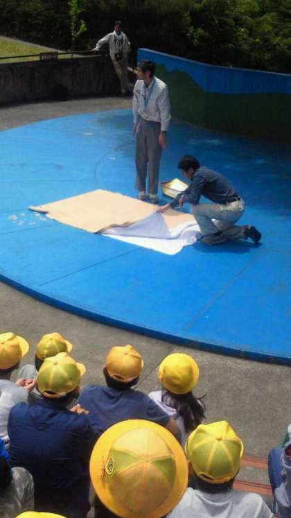 所員の方より、毛布とシーツの使い方など、自然の家での過ごし方を教えていただきました。
