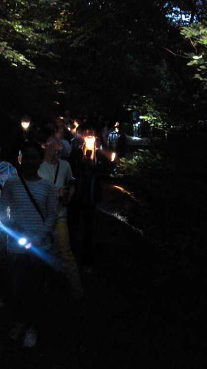 夜道をグループごとに歩きます。自然の中の夜を味わうことができたかな?