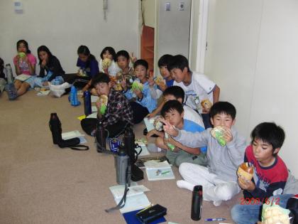 野外学習その7 公開日 2009/06/03 更新日 2009/06/03 学校の様子 野外炊飯からずいぶん時間がたっているし、ナイトウォークもして動いているので、おなかがすきました。 反省会をしながらの、夜食は最高ですよ。