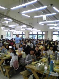 みなさん、おはようございます。 2日目の朝も、みんな元気です。 朝のつどいの後、朝食タイムです。