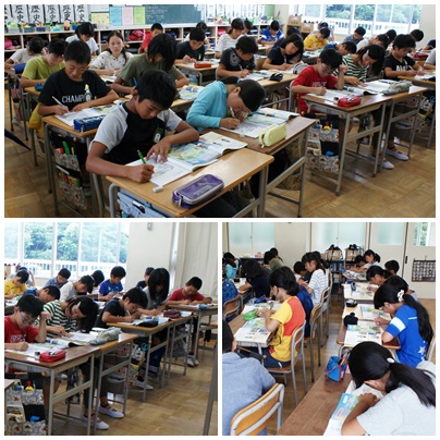 授業 6年生 公開日 2017/07/04 更新日 2017/07/04 学校の様子 1時間目の6年生の授業の様子です。1組は算数で比を簡単にする学習、2組は理科で生き物のくらしと環境の学習でした。さすが6年生、2クラスとも集中して授業に取り組んでいます。
