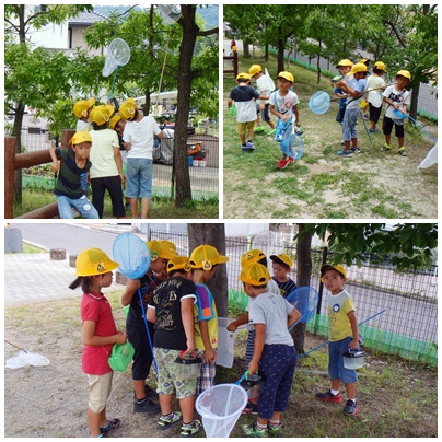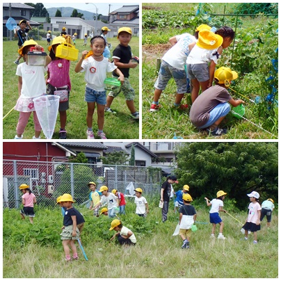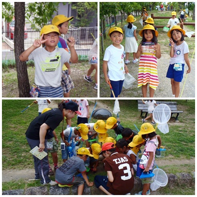 生活科で虫取り 1年生