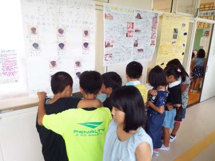 展示されている作品を見ていると、夏休みに頑張った児童たちの姿が目に浮かびます。