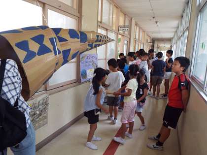 夏休み中の自由研究や工作など、たくさんの力作が学校中に飾られました。