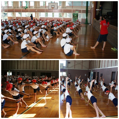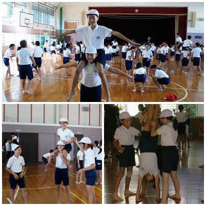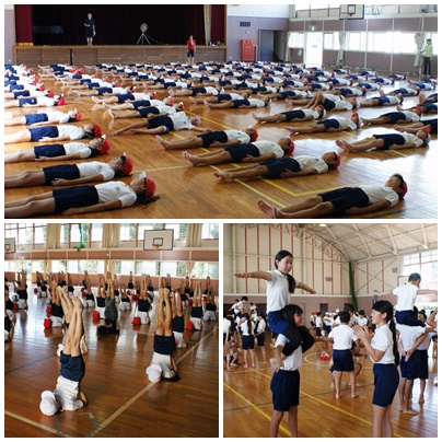 運動会練習 5・6年生 公開日 2017/09/08 更新日 2017/09/08 学校の様子 5・6年生は午後体育館で運動会の練習を行いました。組み立て体操の練習です。初日なので個人と2人組の技の練習でした。6年生は昨年経験しているので、6年生の手本を見て5年生も技ができるように頑張っていました。組み立て体操は運動会の最後の演技種目です。本番で美しい演技ができるよう、練習を頑張ってください。