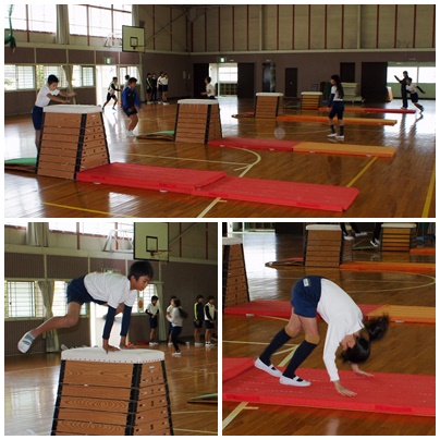 2時間目の6年生の授業の様子です。1組は算数で「反比例」の問題を解いていました。2組は体育で「跳び箱」に取り組んでいました。みんな一生懸命がんばっています。