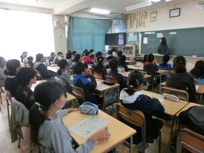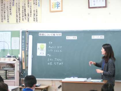 本日、栄養教諭に来校いただき、5年生が訪問授業を行いました。「野菜について知ろう」をテーマに、野菜の働きや1日に必要な野菜の量など、お話していただきました。授業の後、栄養教諭の先生と一緒に給食を食べ、野菜の必要性について知るよい機会になりました。