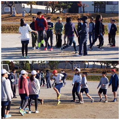 縄跳び運動は、今日からは大縄跳びの練習です。