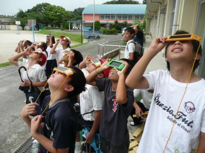 学校でも、遮光板を出してきて、太陽が月に隠されてまるで三日月のようになるのをみんなでワイワイ言いながら楽しみました。