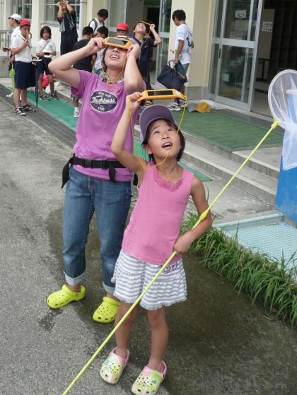午前中登校していた陸上部の選手や学校に来ていた親子とともに、ちょっとした観察会になりました。