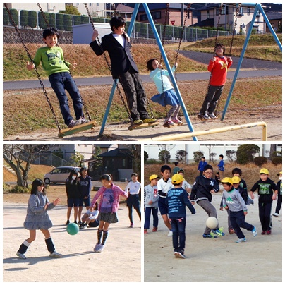 昼放課 公開日 2017/12/05 更新日 2017/12/05 学校の様子 今朝は冷え込みましたが、天気がよく昼放課の運動場は暖かです。子どもたちは運動場で、友達同士思い思いに楽しそうに遊んでいました。カメラを持って歩いていると、「写真撮ってえ〜」と言って笑顔で近付いて来る子がたくさんいました。