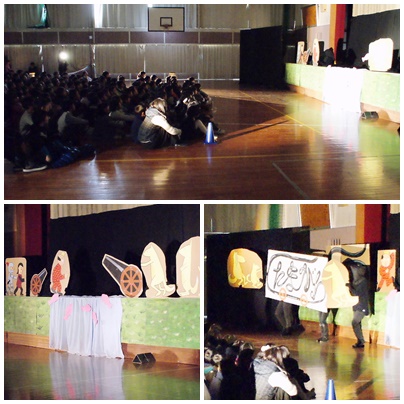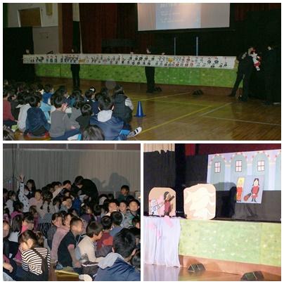 ZOOお楽しみ会 公開日 2017/12/13 更新日 2017/12/13 学校の様子 ZOOのお母さん方による「ZOOお楽しみ会」がありました。今年はちょうど20回目の開催となります。出し物は、「たこきちとおぼうさん」の読み聞かせと「もっとおおきなたいほうを」のペープサートです。お母さん方の熱演に子どもたちは大喜びでした。ZOOの皆さん、楽しい時間をありがとうございました。