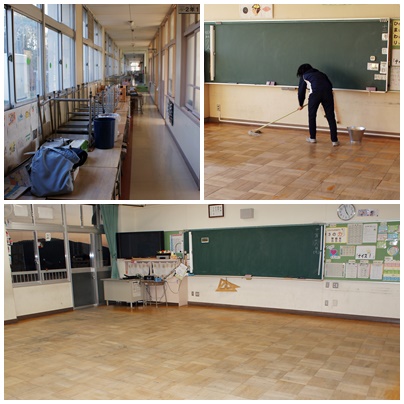 教室ワックスがけ 公開日 2017/12/15 更新日 2017/12/15 学校の様子 教室のワックスがけを行いました。何もなくなった教室は結構広く感じます。月曜の朝はみんなでからぶきを頑張ってくださいね。