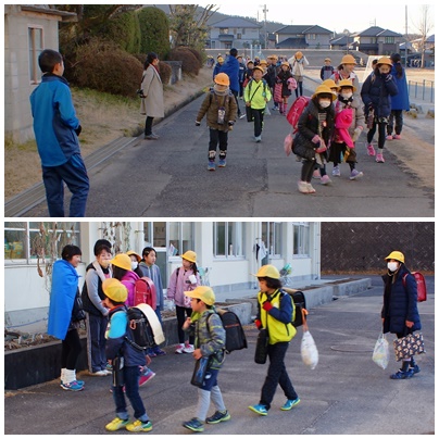 あいさつ運動 公開日 2018/01/11 更新日 2018/01/11 学校の様子 今週は三学期の「あいさつ運動」を行っています。朝昇降口前で5・6年生の総務委員が登校してくる子どもたちに大きな声で元気よく「おはようございます」とあいさつしています。登校してくる子どもたちも、それに応えて大きな声であいさつを返します。笑顔のあいさつで気持ちのいい一日のスタートです。
