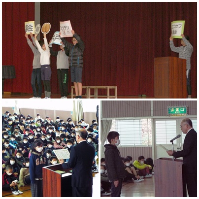 児童集会を行い、総務委員がユニセフ募金についての劇をしてくれました。ユニセフ募金は、世界の子どもたちの命と健やかな成長を守る活動に役立てられます。募金活動は2月6日(火)〜9日(金)まで行います。ご協力をよろしくお願いします。