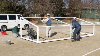 サッカーゴールのペンキ塗り 公開日 2018/02/09 更新日 2018/02/09 学校の様子 サッカーゴールのペンキを塗っていただきました。長年の風雨でペンキが剥げてしまっていましたが、白いペンキを塗っていただいたおかげできれいになりました。ありがとうございました。