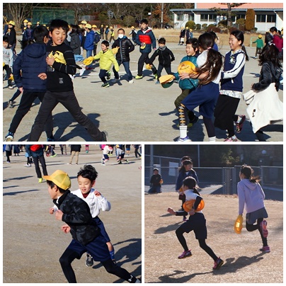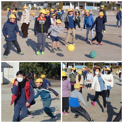 なかよし遊び 公開日 2018/02/14 更新日 2018/02/14 学校の様子 今年度最後のなかよし遊びがありました。今日は気温は低いですが天気がよく、子どもたちは運動場いっぱいに広がって思い切り体を動かしています。グループごとに分かれてドッジボールや氷鬼・ふやし鬼などをして、みんなで楽しみました。